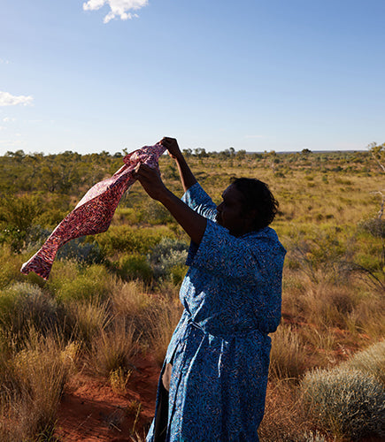 "As a brand that celebrates the diversity of our Australian cultural heritage and the beauty of our natural world, we felt incredibly privileged to have worked alongside the artist and with Utopia Art Centre for the Papinelle x J. Pitjara Long collection. Papinelle is so proud to uphold the legacy of one of Australia's foremost Indigenous artists."