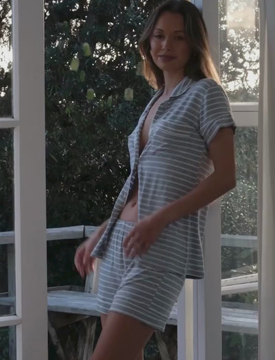 Our Kate Boxer Pajamas will be your new favorite. Made from the luxuriously soft Modal fiber it feels like you are lying in feathers! Now available in a beautifully delicate Grey Stripe